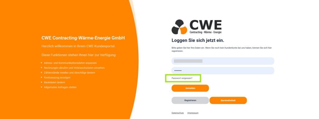 Für die Registrierung im Kundenportal benötigen Sie Ihre letzte Jahresabrechnung. Sollten Sie als neuer Kunde noch keine Jahresabrechnung bekommen haben, wenden Sie sich bitte an unseren Kundenservice unter der Telefonnummer 040 – 41 36 154-0 oder per E-Mail an info@cwe-online.de.