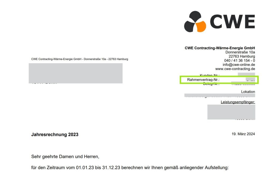• Rahmenvertragsnummer (auf der ersten Seite Ihrer aktuellen Jahresabrechnung),