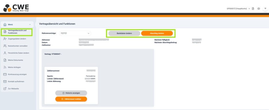 5. Wie kann ich die Abschlagshöhe oder die Bankdaten für meinen Vertrag über das Kundenportal ändern?